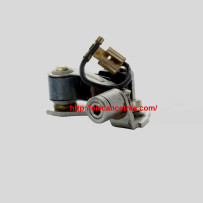 Vis platinées constituées de 3 pièces : linguet mobile, rupteur fixe et levier de came intermédiaire.